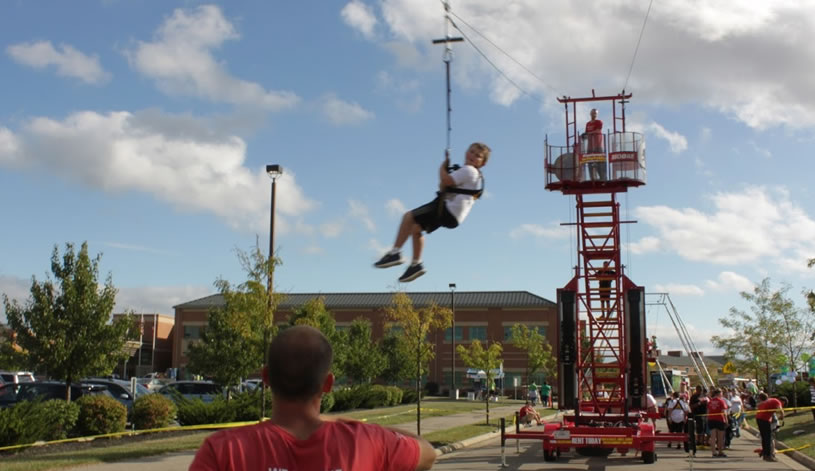 Looking for something new and exciting for your next event or party? Entertain Indy has got you covered with our Mobile Zipline! 120 feet long and 35 feet tall at its peak, our zipline is sure to get your heart racing. We can accommodate 90+ people per hour, making it the perfect attraction for fundraisers, corporate events, and more. So come on and give us a try – we guarantee you won’t be disappointed!